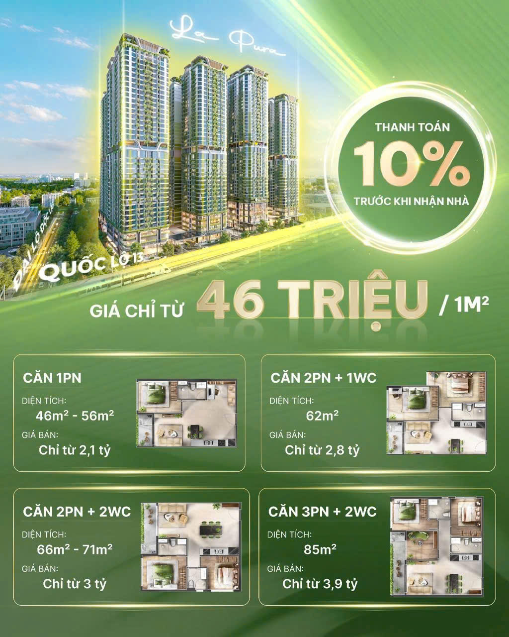 - 1-Bedroom Apartment (46 m²): from VND 2.6 billion/unit